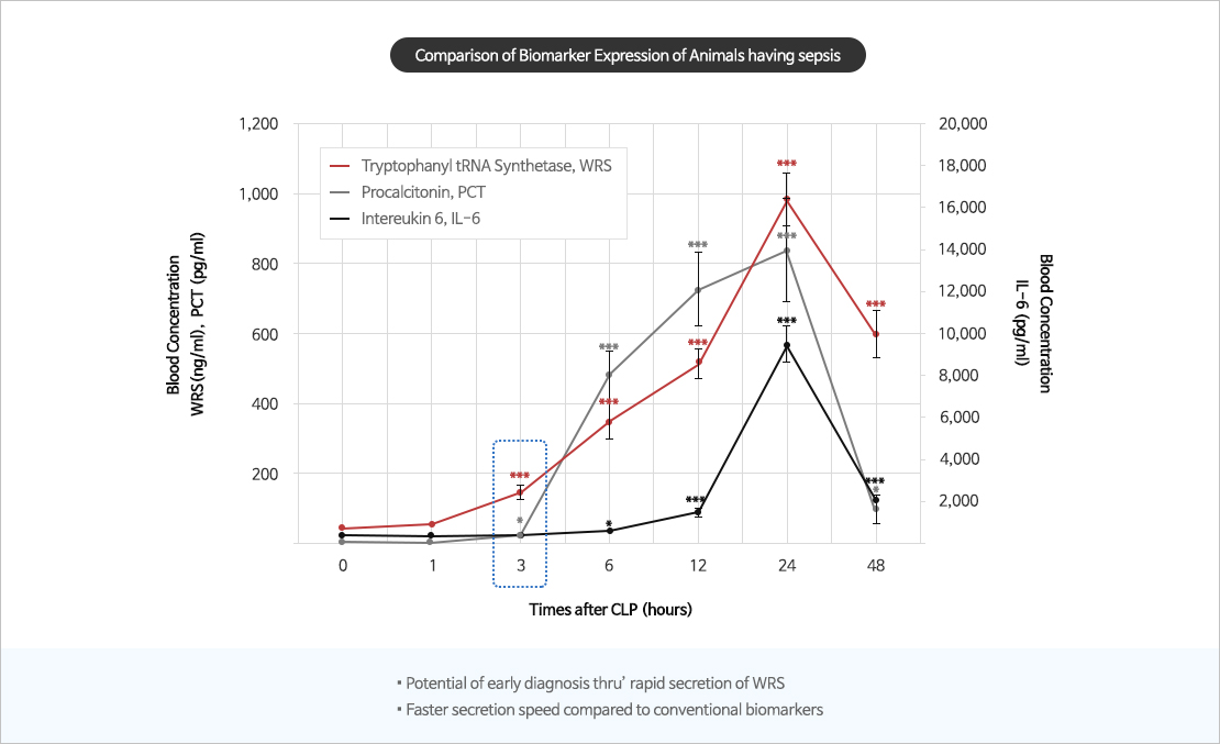 - Secreted level of WRS was increased in patients with sepsis caused by various types of infection (bacteria, fungi, viruses). WRS as a potential biomarker for sepsis diagnosis has been identified.