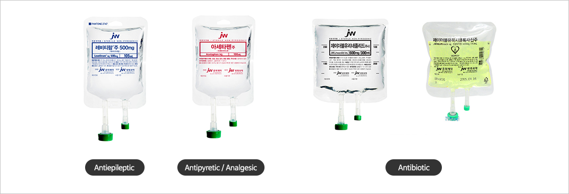 Non-PVC is a general term for materials other than PVC. In the IV solution container, PP, PE or its composites are used, which has the advantages of being an environmentally friendly material, but requires high technical skills in processing. JW started the research of Non-PVC containers in the 1990s and developed its own technology for non-PVC IV solution containers, leading the advancement of domestic IV solution containers. In addition, JW has acquired the US FDA in 2003 and CFDA in China in 2004, and is actively engaged in overseas business such as exporting non-PVC IV solution film to China.